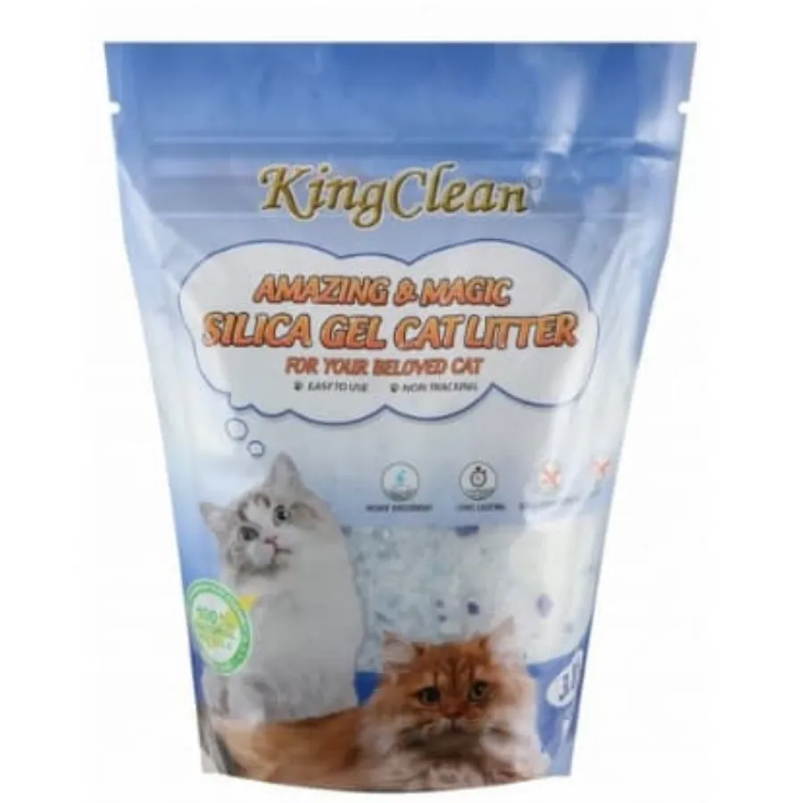 رمل King Clean الكريستالي للقطط هو رمل عالي الامتصاص للقطط مصنوع من حبيبات السيليكا الصغيرة. يشتهر بقدرته الفائقة على امتصاص السوائل والروائح الكريهة بسرعة، مما يجعله خيارًا فعالًا للحفاظ على صندوق الرمل جافًا ونظيفًا. كما أنه خالٍ من الغبار، مما يجعله لطيفًا على كفوف القطط ويقلل من مشاكل الجهاز التنفسي.